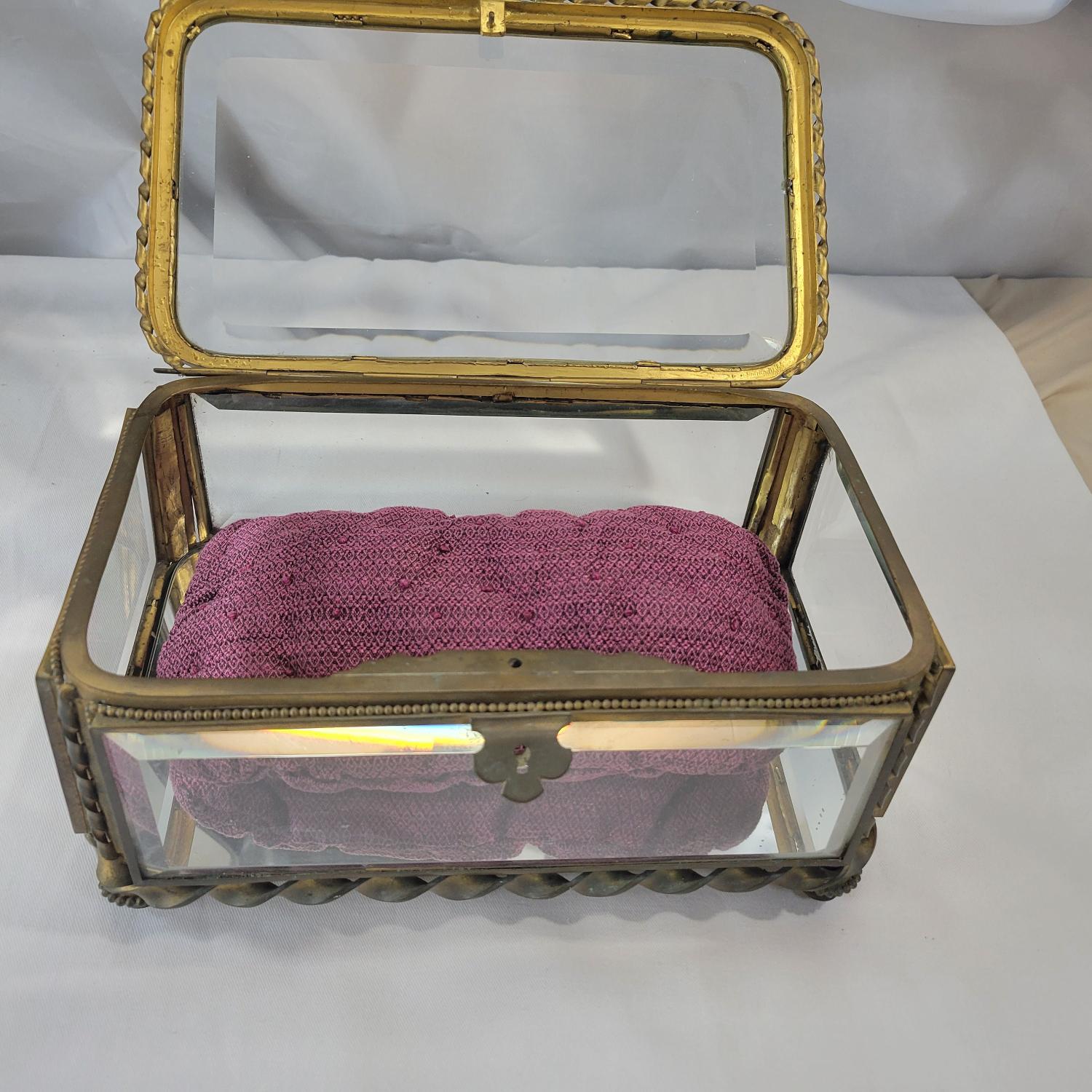 Antique French brass and glass footed jewelry box