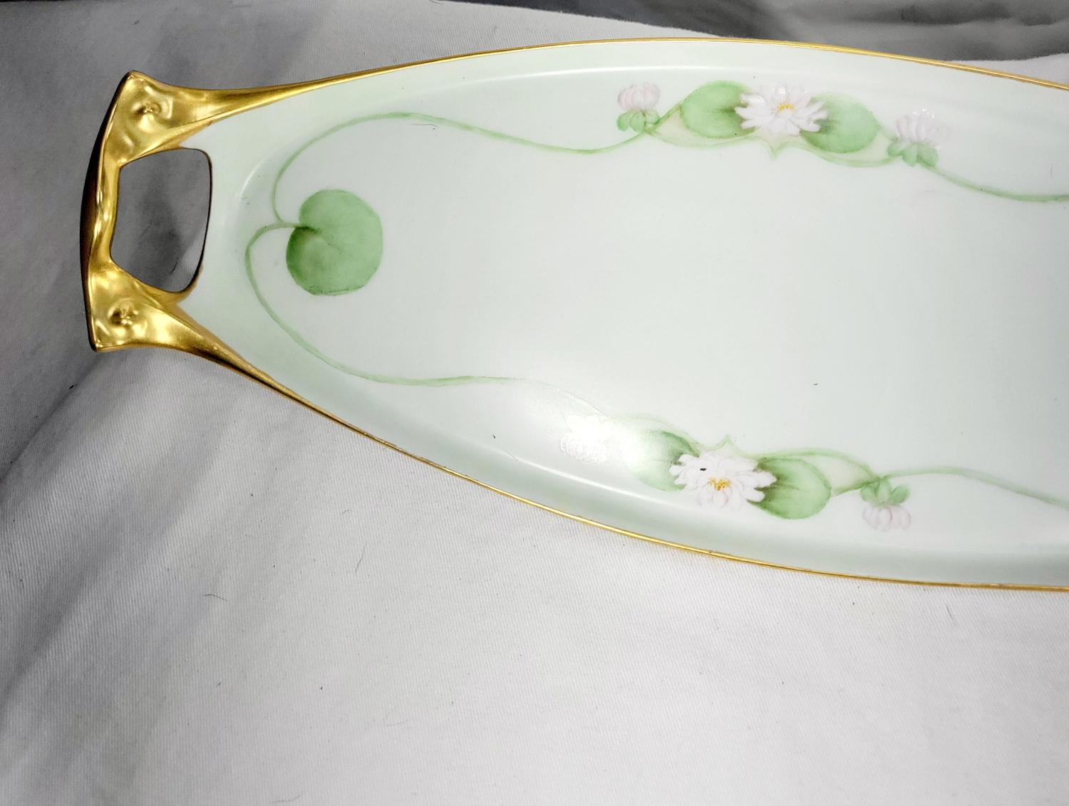 Antique RC Bavaria Germany handpainted porcelain green and gold serving tray