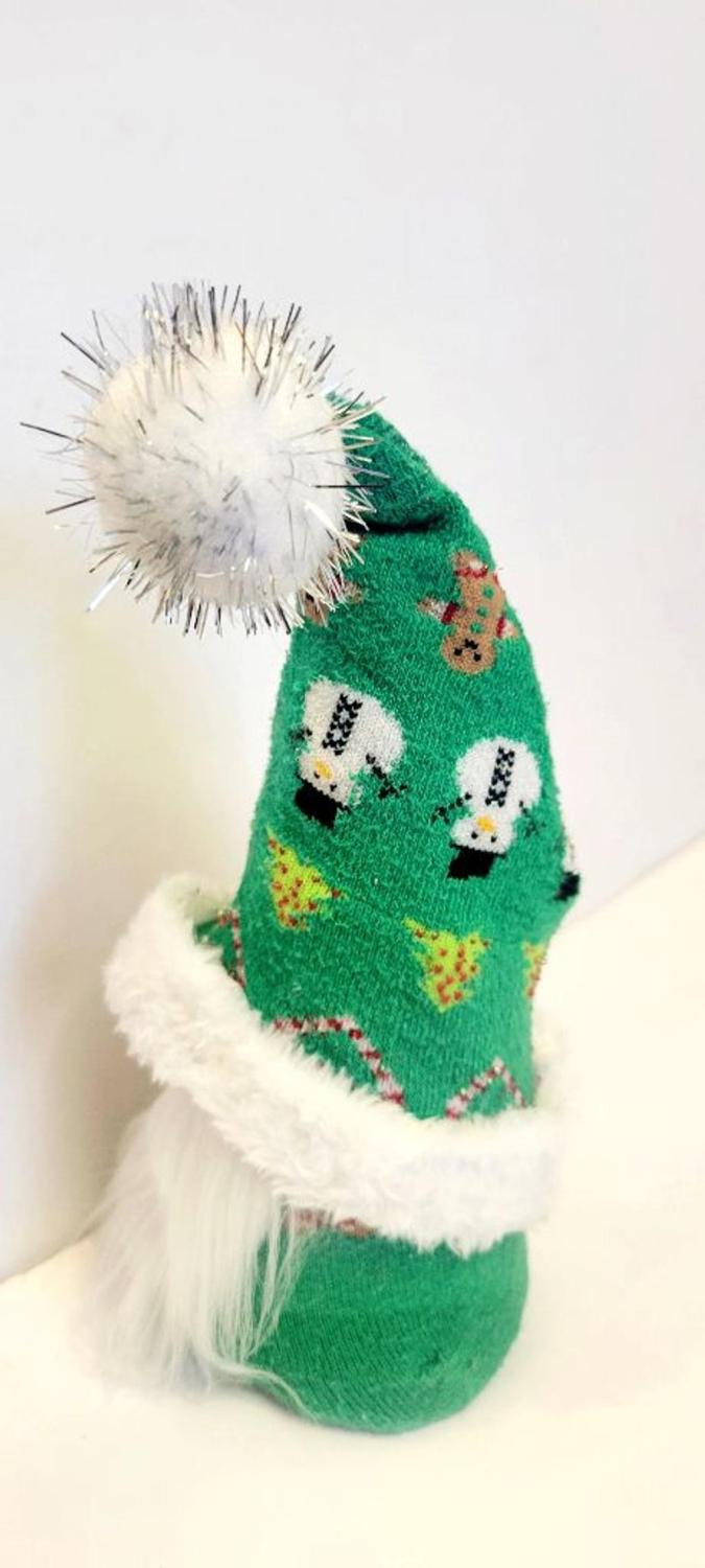 Meet Twinklepine Glitterfrost, a whimsical spirit wrapped in cozy seasonal attire. Bring a touch of holiday cheer and whimsy to your everyday with this handmade cone Christmas gonk gnome. Size: Approximately 9.5" tall from bottom to tip of his pom pom. Hat made from a Christmas themed sock with gingerbread, snowman, Christmas trees, and candy canes, with a sparkly white pom pom. Features: Cone shaped base to add stability and he won't topple over easily. Faux fur beard, trimmed printed hat, and wood nose. Perfect for: Coffee bar decor, Kitchen Shelf Sitter, Tiered tray collection, Christmas Gift for Coffee Lovers, Rustic Home Decor. Care: Light dusting. Not intended for outdoor use Or as a toy. Ships same day or within 1 business day