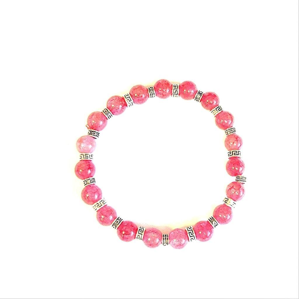 Add a pop of color to your outfit with this elegant handcrafted pink snowflake beaded bracelet. Perfect for any occasion. Measurements are approximately 7.5" on a strong stretchy cord.