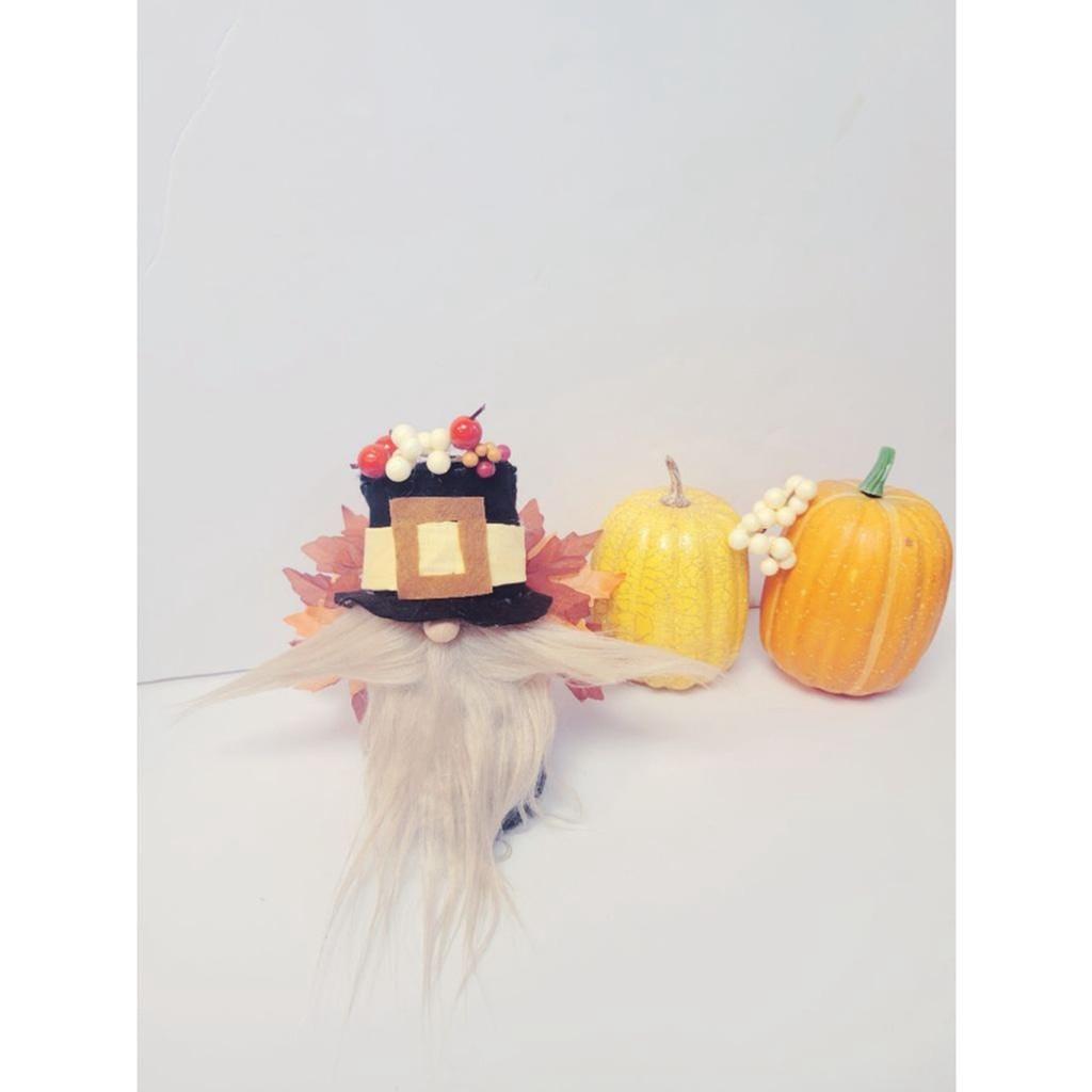 Meet Harvest Thornshadow, spirit of gratitude & spreading magical autumnal decoration for your home. He's handcrafted with love, this gnome is sure to brighten up your holiday decor. Made from new materials, filled with rice and premium poly-fil for stability, long blonde beard, wood nose, Pilgrim hat with foliage, and autumn colored leaves for his colorful tail. He measures approximately 7" tall.