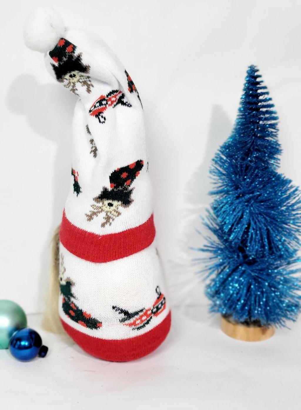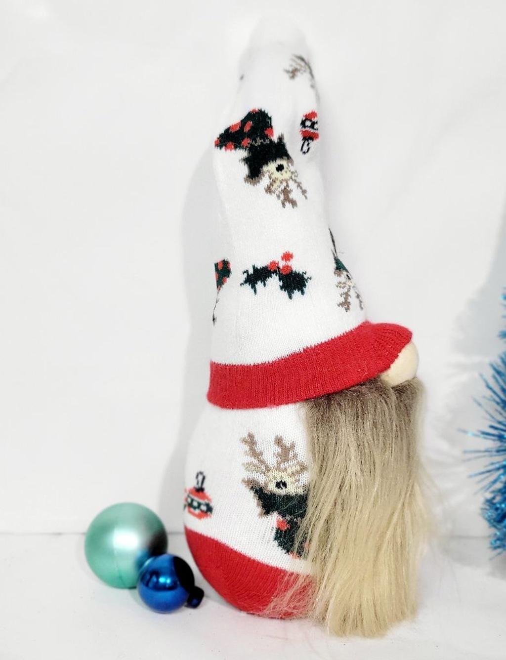 Hand crafted Christmas sock gnome with reindeer and mistletoe