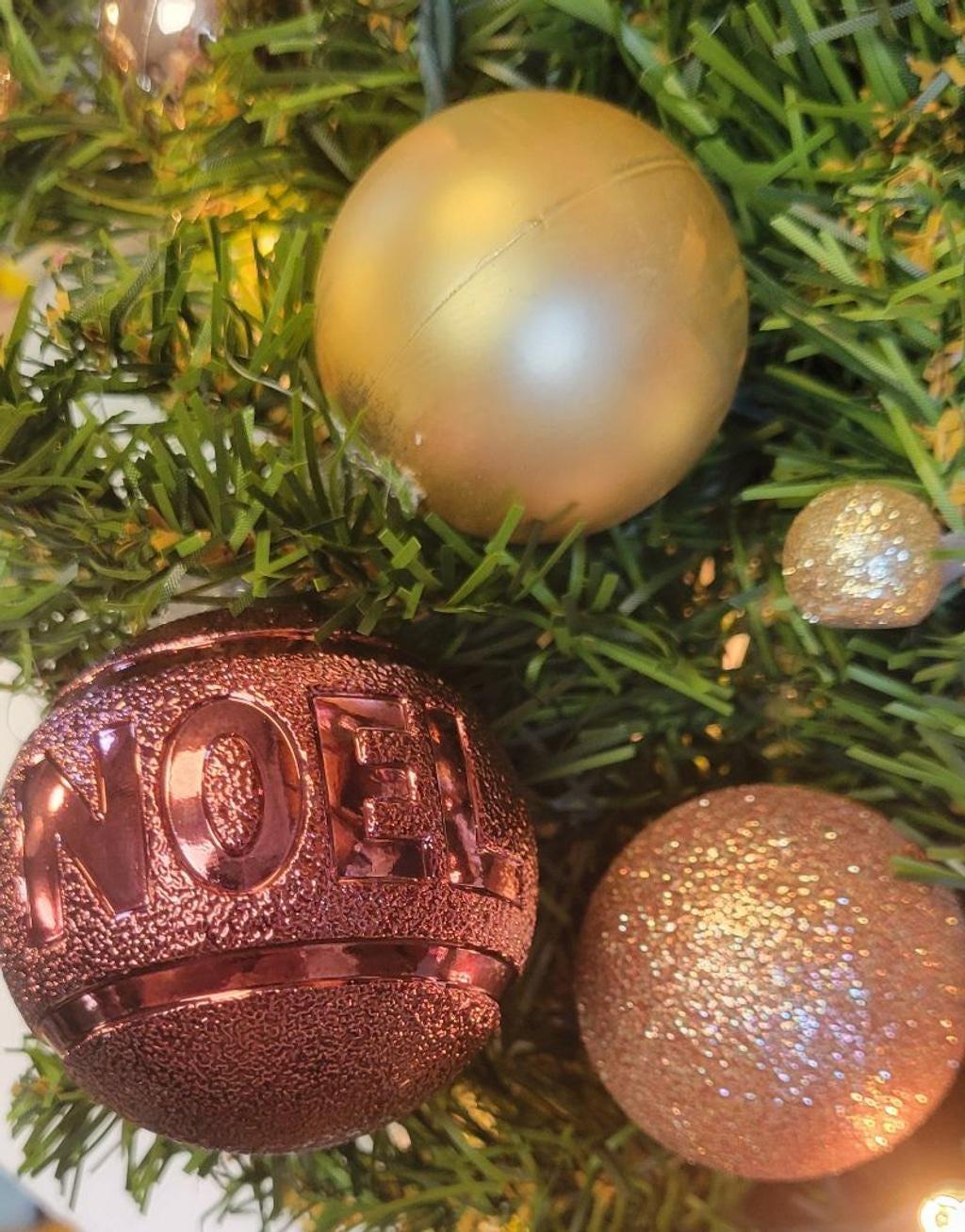 Elevate your home this season with this stunning 19-inch Handmade Pink and Gold Prelit Wreath, a true one-of-a-kind piece designed to bring a touch of luxury and festive shimmer to any door or mantel. Size: Generous 19-inch finished diameter. Lights: Professionally wired with warm white wired plug-in lights for a soft, inviting glow Color Palette: A sophisticated mix of pastel pink, rich golden hues, and creamy champagne shimmer ornaments. Unique Element: Features a bespoke 'NOEL' sign centerpiece, perfectly integrated into the design. Materials: Constructed on a durable mixed-pine base and adorned with high-quality, shatterproof ornaments and specialty floral picks. Versatile: Perfect for front door display, over a fireplace mantle, or as a statement piece in a chic nursery or bedroom. Shipping & Care Ready to Ship: Same day or within 1 business day Shipping: Wreath will be carefully packaged in a sturdy box and secured to minimize movement. The box is perfect for storing the wreath off-season. Care: Intended for indoor use or display in a covered, well-protected area away from direct moisture and harsh sun to ensure longevity. #HandmadeWreath #PinkAndGoldChristmas #PrelitWreath #LuxuryHomeDecor #HolidayWreath #DoorDecor #EtsyShop #PoshmarkFinds #PinkChristmas #ChristmasHome #NoelDecor
