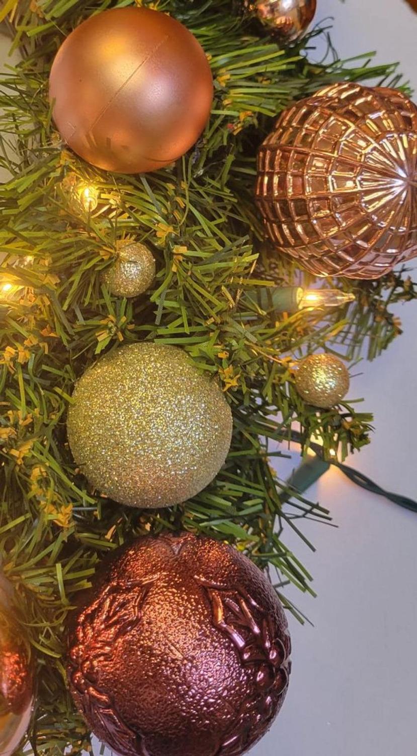 Luxury Pink & Gold Christmas Wreath, 19" Handmade Prelit Holiday Door Decor