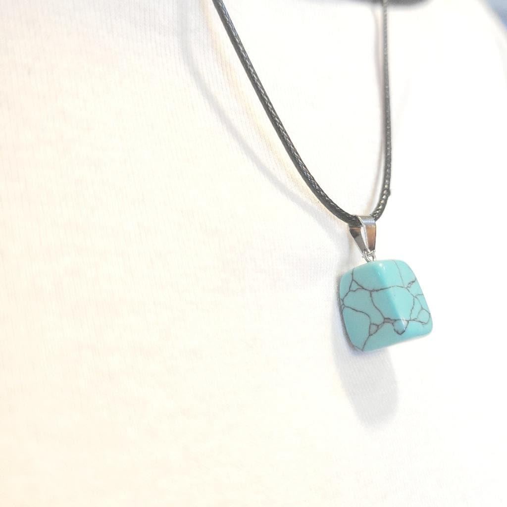 Natural Amazonite Crystal Cube Pendant Necklace