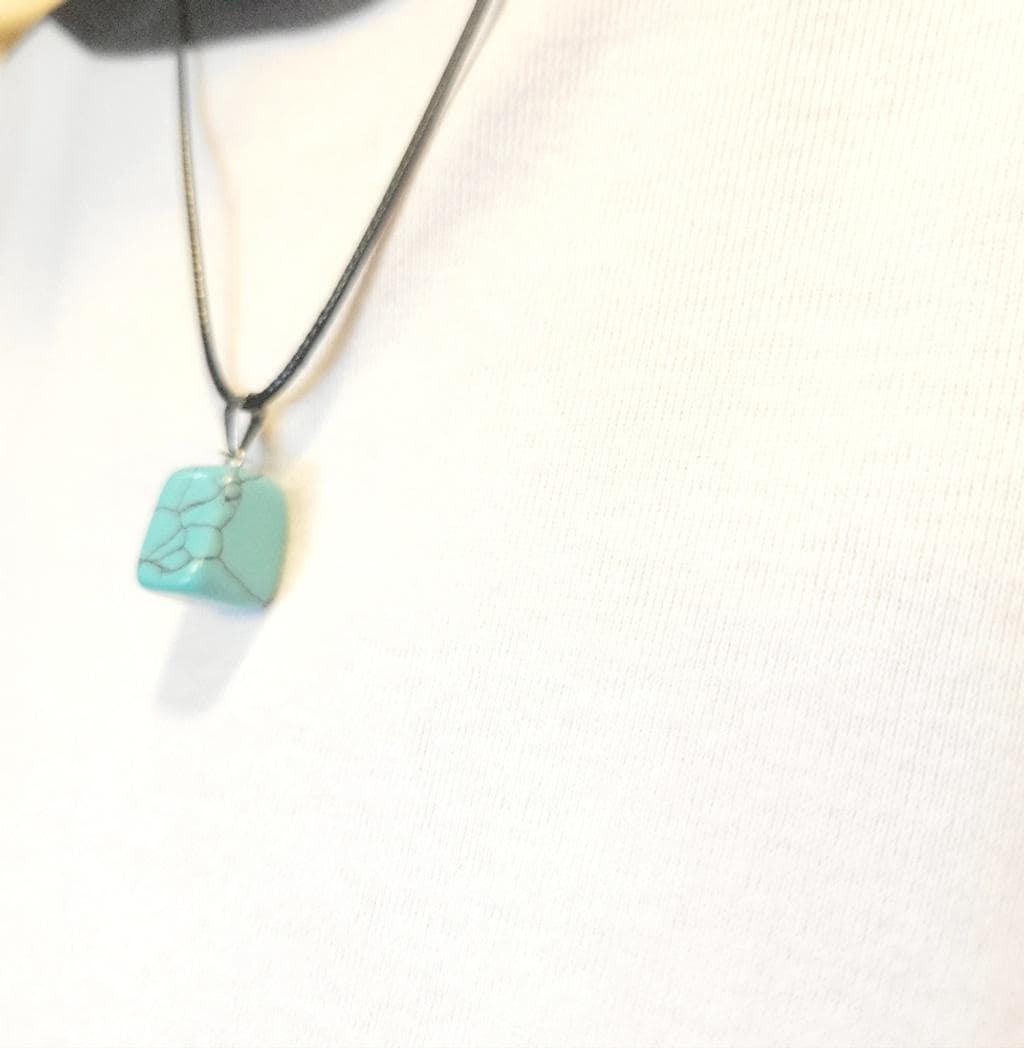 Elegant natural amazonite crystal 3/8" cube pendant on an 18" adjustable corded necklace. Perfect for adding a pop of color to any outfit.