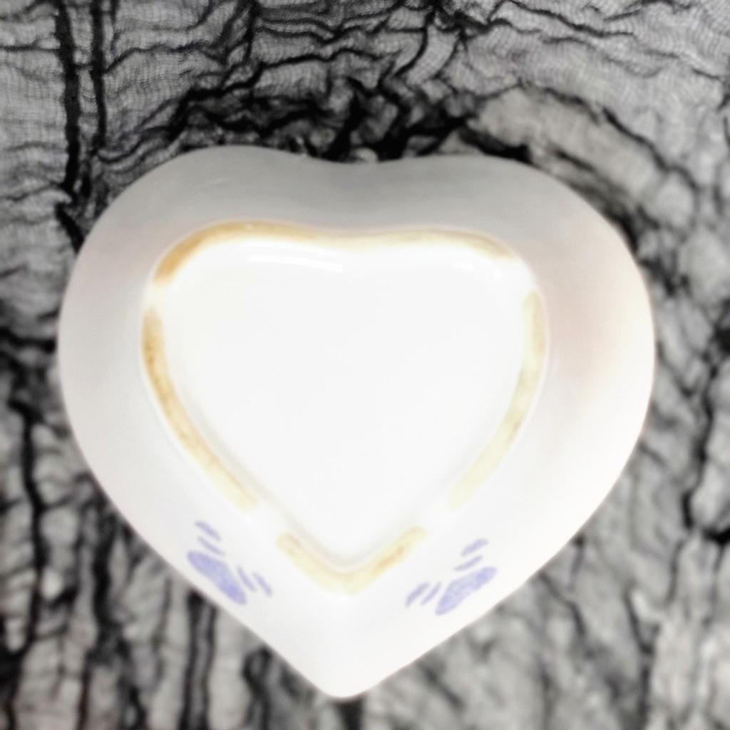 Gently used, rare vintage Corningware "Blue Hearts" heart-shaped ceramic baking dish. There are a few natural blemishes and tiny chips as shown. Measurements are approximately 8.5x8.5x3.5".