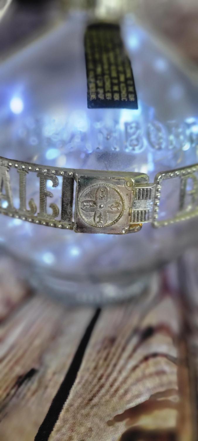 Handcrafted Vintage Chambord Royal Deluxe glass liquer bottle with battery-operated LED fairy lights. Great for a table centerpiece.