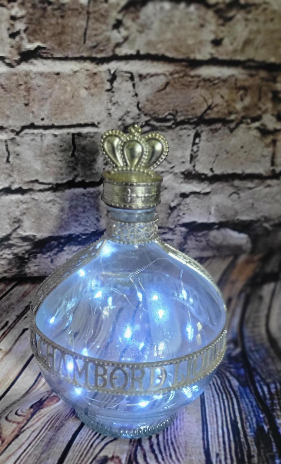 Vintage Chambord Royal Deluxe Liquer bottle electric LED Fairy lights centerpiece